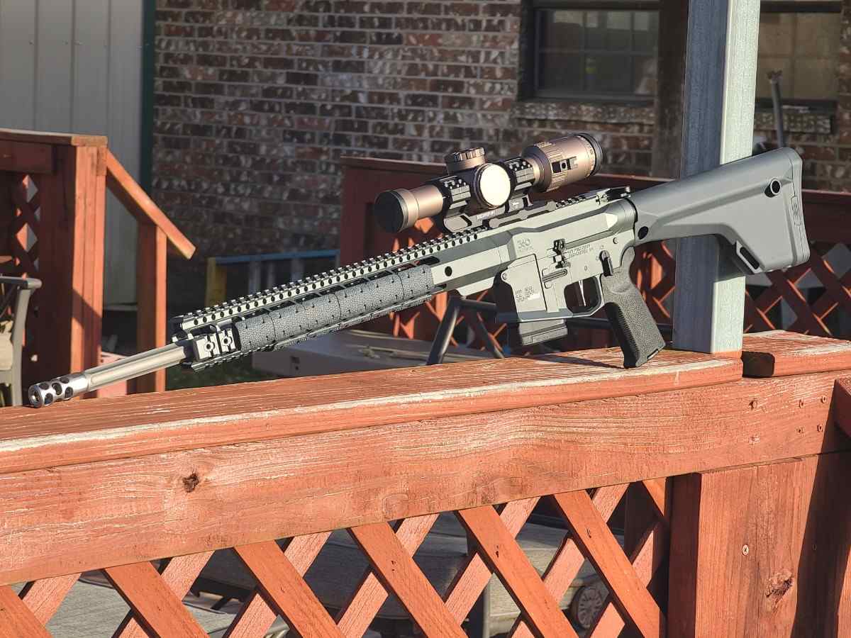 360 precision rifle. 20-in DMR stainless fluted barrel chambered in .223 wylde. Full chrome BCG. Battle arms development LPK, schmid nickel boron coated flat bow trigger, k2 grip. And a few other small parts. I have roughly $2,500 total invested Asking $2,000.